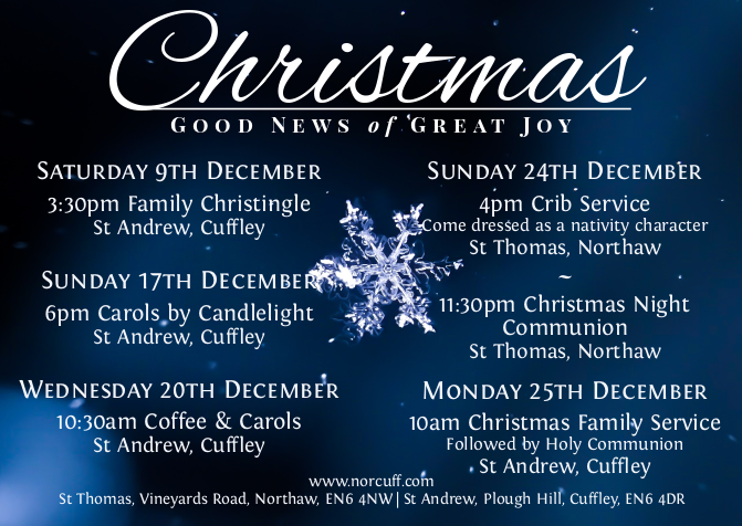 You would be very welcome at our 10:30am service in St Andrew, Cuffley or at 9am for a service of Holy Communion in St Andrew, Cuffley, this Sunday, as we think about getting ready for Jesus.